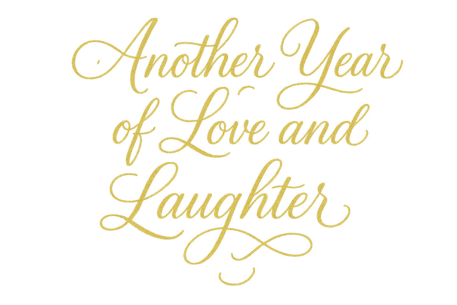 anniversary sentiment, elegant calligraphy, "Another Year of Love and Laughter" gold on creamPlayful Couple: