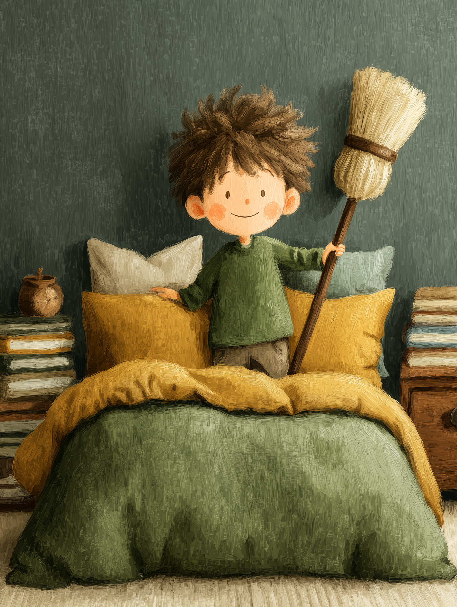 "Dust Monster Alert! Hero needed with vacuum powers!" superhero comic style Teen Motivation:
