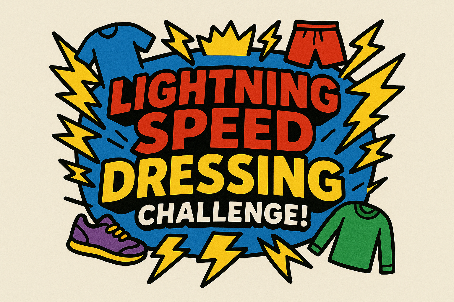 "Lightning Speed Dressing Challenge!" yellow lightning bolts with clothes iconsThe "Breakfast Champion" Card: