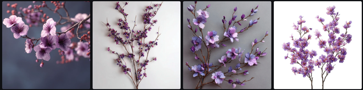 purple, cherry blossom branches= Something pink PLUS cherry blossom branches (might get pink background with separate branches)